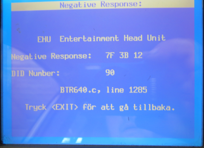 Typical fault message in TECH2 when adding the radio: